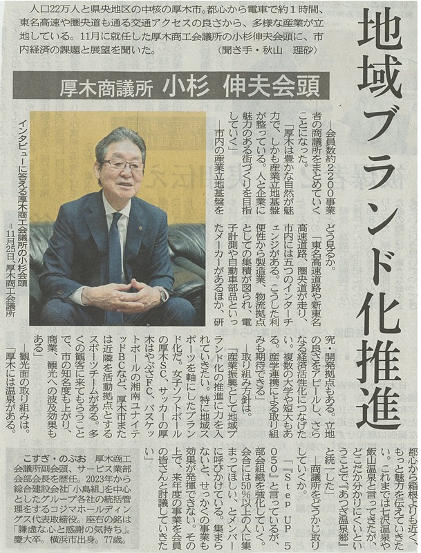 コジマホールディングス代表小杉伸夫(厚木商工会議所会頭)のインタビュー記事が掲載されましたのでお知らせいたします。